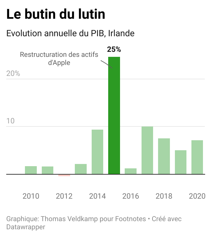 Ces pratiques sont marquées dans le numérique. En 2015, Apple a transféré l’essentiel de sa propriété intellectuelle vers ses filiales irlandaises. Ce fut l’une des plus grandes opérations d’optimisation fiscale de l’histoire, poussant le PIB irlandais à une croissance artificielle de 25%.
