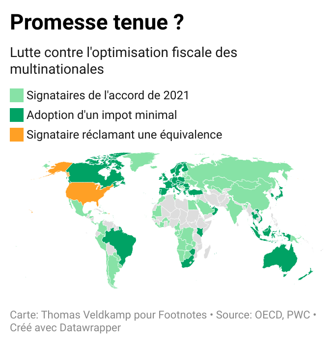 Face à ce risque, Washington a ajusté son dispositif de taxation minimale, mais sans reprendre la logique de l’OCDE qui impose un taux minimal dans chaque pays. Le dispositif américain calcule l’impôt à l’échelle mondiale, permettant de compenser des bénéfices sous-taxés dans un pays par ceux taxés plus fortement ailleurs.