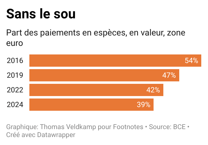 La part des paiements en cash est passée sous les 50% en Allemagne, et même sous les 40% en France.